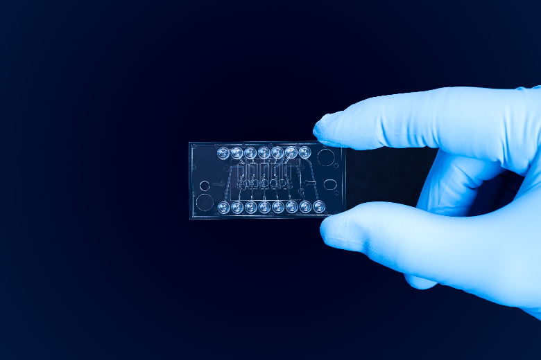 Refeyn’s new MassFluidix 2nd generation microfluidic chip enables rapid sample dilution and mass photometry measurement in each of its five channels. Image Credit: Refeyn