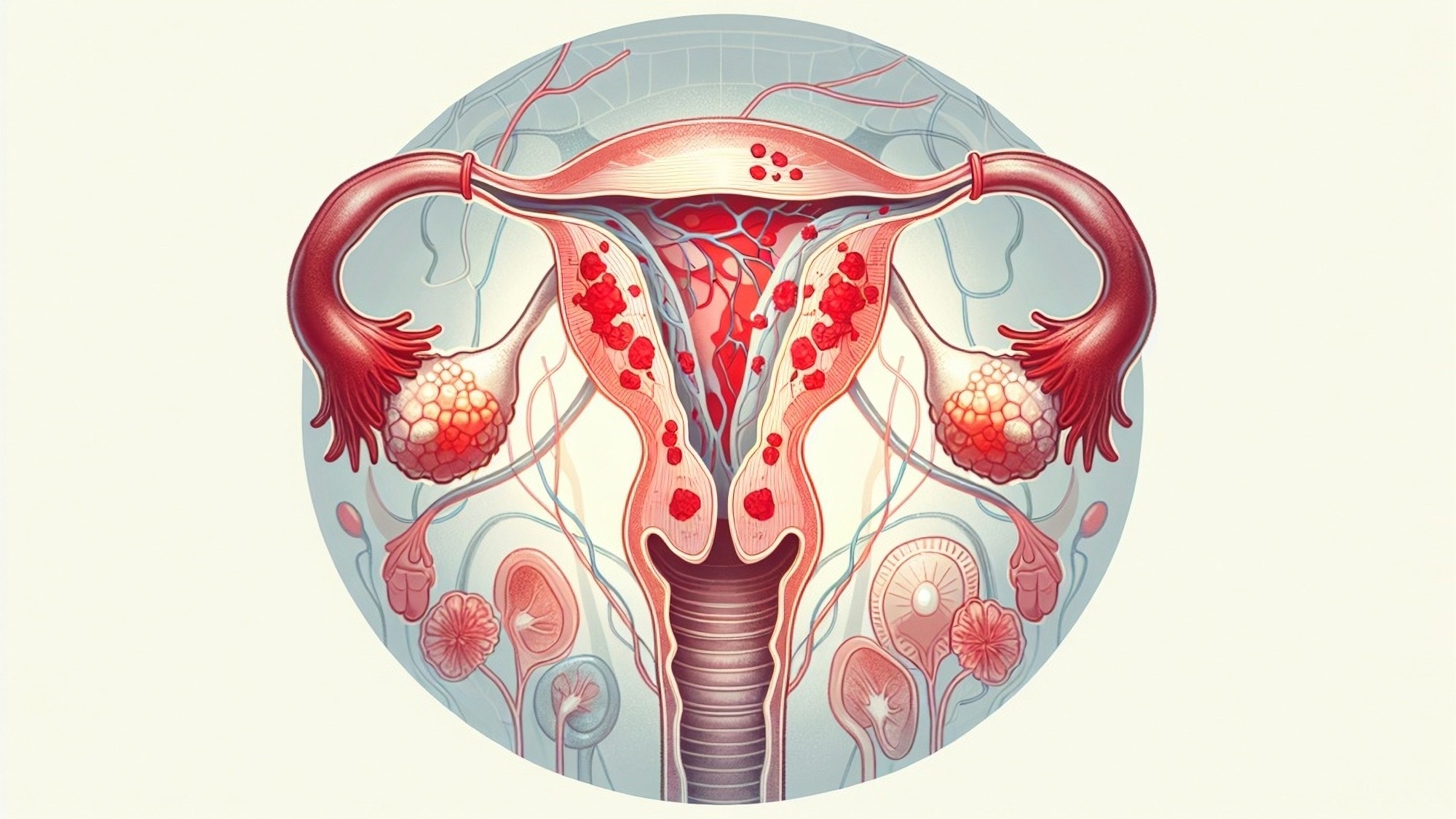 Endometriosis is characterized by the abnormal growth of endometrium-like tissue outside of the uterus, with pelvic organs like the ovaries, fallopian tubes, uterus, bladder, and intestines most frequently affected. Since these tissues act like the endometrium, which is the tissue that lines the uterus, they similarly thicken, break down, and bleed with each menstrual cycle; therefore, the periodic bleeding of endometriosis growths in organs outside of the uterus can lead to a wide range of symptoms, some of which include local inflammation, pelvic pain, congestive dysmenorrhea, excessive menstrual bleeding, and pain during intercourse.