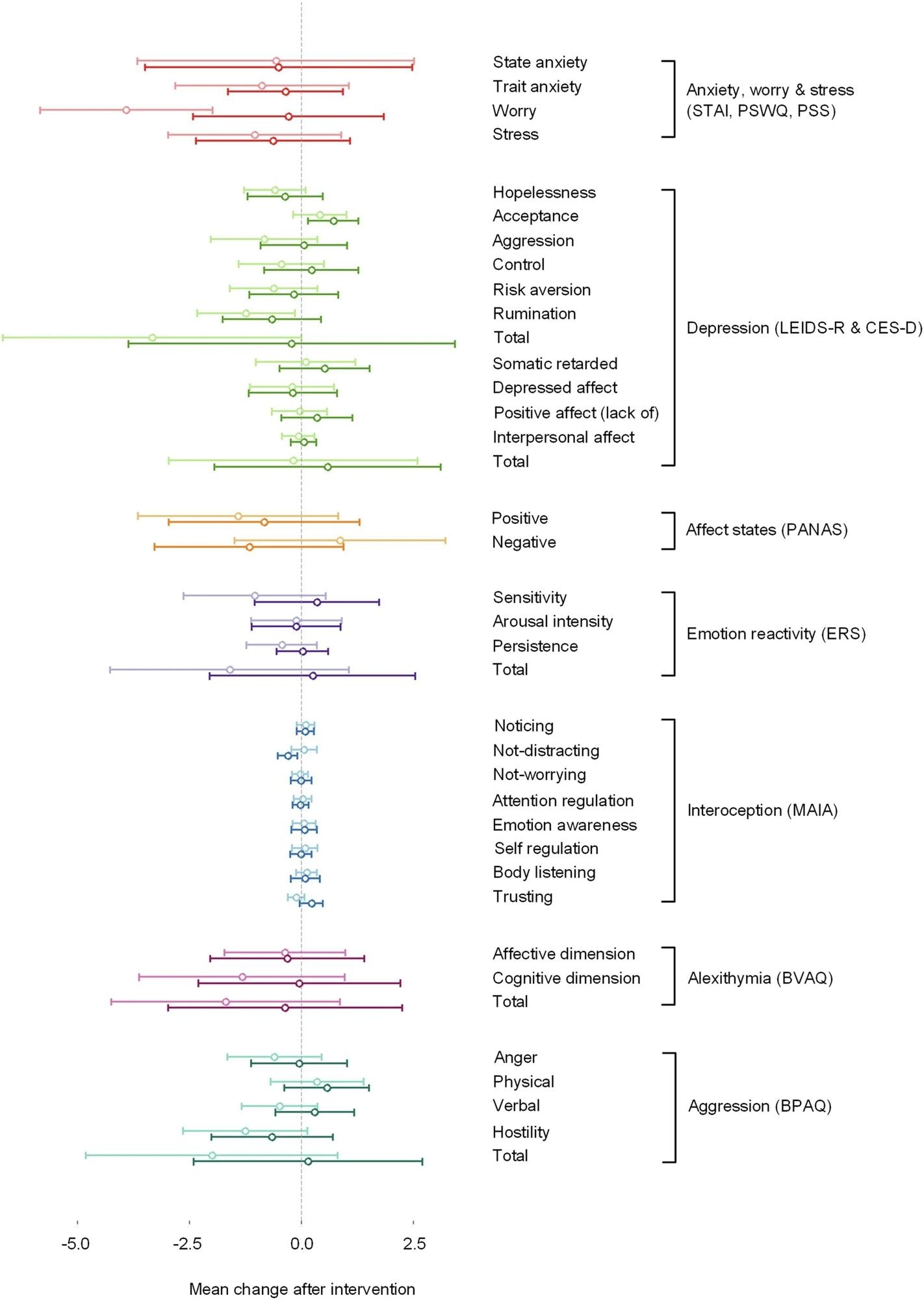 These included the Center for Epidemiological Studies Depression Scale (CES-D), Positive and Negative Affect Schedule (PANAS), Buss-Perry Aggression Questionnaire (BPAQ), Emotion Reactivity Scale, Bermond–Vorst Alexithymia Questionnaire (BVAQ), Penn State Worry Questionnaire (PSWQ), Multidimensional Assessment of Interoceptive Awareness (MAIA), Perceived Stress Scale (PSS), and Leiden Index of Depression Sensitivity – Revised (LEIDS-R).