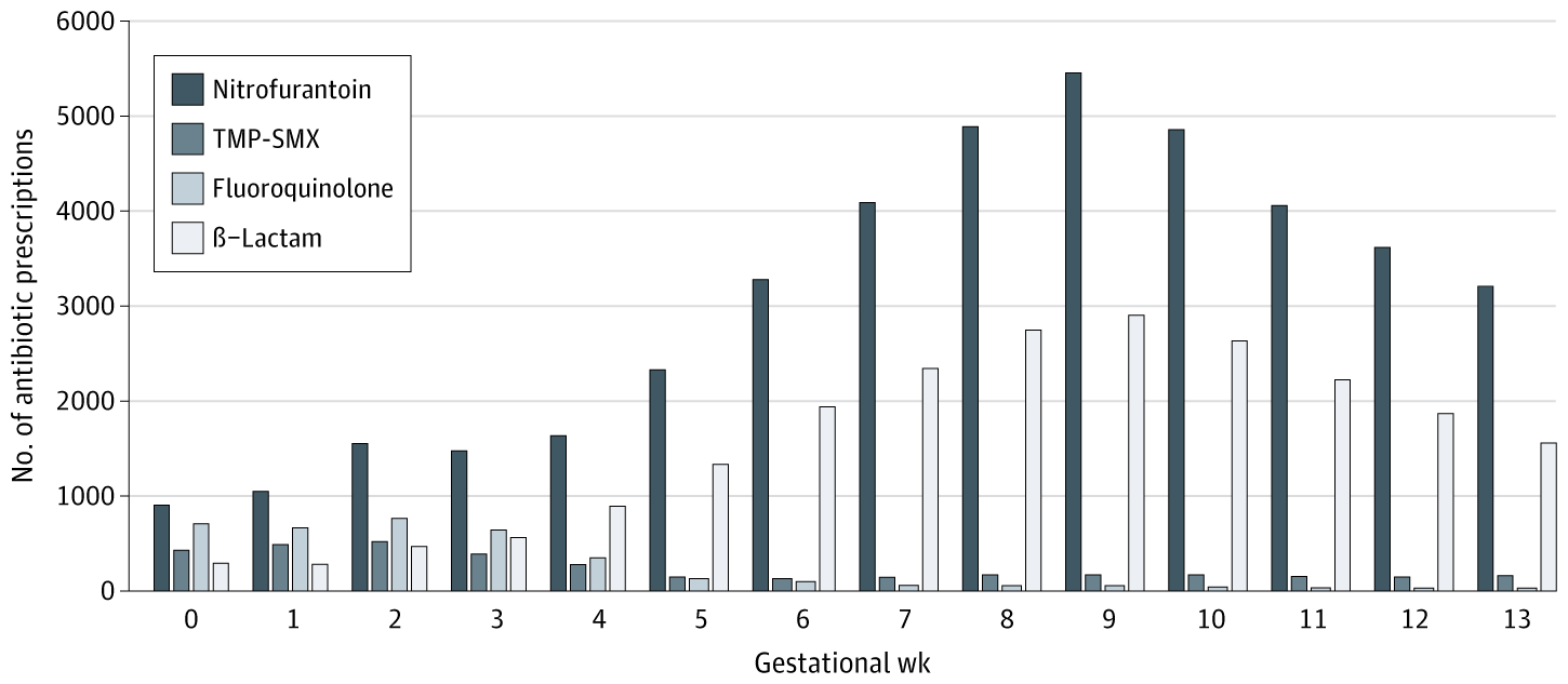Overall, the results support current recommendations for caution in using TMP-SMX in the first trimester but do not support limiting nitrofurantoin use.