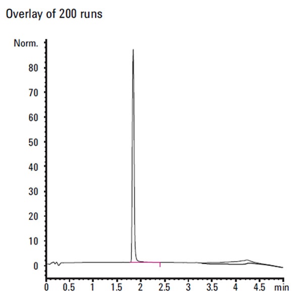 - Good reproducibility – the system took 200 consecutive injections of samples and proved its reproducibility of results. The peak shape, retention time as well as efficiency remained same after 200 insulin injections without cleaning the system columns in between.
