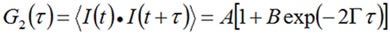 Where A refers the intercept or amplitude of the correlation function, Γ is the correlation decay rate, and B is the baseline.