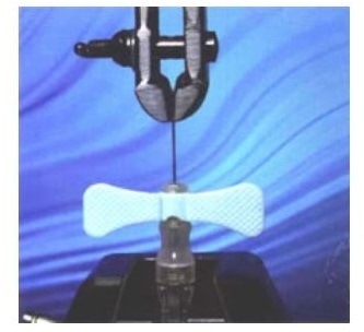 There should be lightly serrated faces in the pneumatic grips, so that the sample does not slip under loading. Then, an axial tensile load is gradually applied until a clean break takes place in a middle part of the needle, beyond the grips.