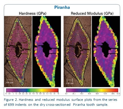 In the present study, nanoindentation tests were carried out on a single Piranha and a single Great White Shark (GWS) tooth sample, using a Hysitron® TriboIndenter® device. The tooth samples were first embedded in epoxy before being polished into a smooth cross-sectional surface to prepare them for testing.