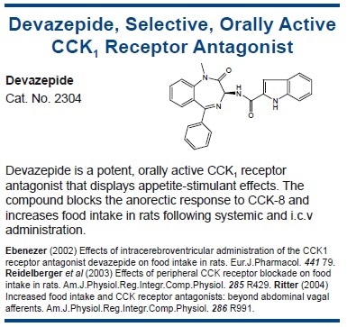 CCK1 receptor antagonists heighten food intake in several species,144 whereas CCK1 agonists have the opposite effect.145 Peripheral CCK has a fast but relatively short-lived effect on feeding, which is consistent with a role in mediating meal termination and satiety.146 In rats, since reduced meal size is largely compensated for by an increase in meal frequency, CCK administration does not lead to weight reduction.147