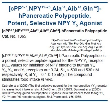 The suppressive effects of PP have not been consistently replicated, and are relatively modest, even at high doses. The potential role of PP is further complicated by the discovery that the central administration of the peptide can induce moderate hyperphagia, potentially via actions on Y5 receptors.