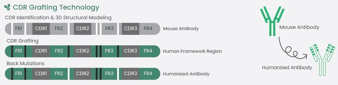 Figure 2. Complementarity-determining region (CDR) grafting technology developed by Sino Biological. Image Credit: Sino Biological Inc.