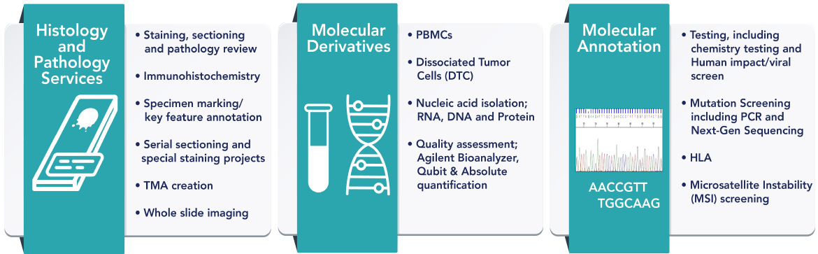 To reproduce the clinical situation for diagnostic development, BioIVT has created a procedure to replicate CNBs and FNAs from fresh surgical collections. BioIVT’s Tri-Format solutions can be utilized in several downstream applications to aid diagnostic assay development without the use of valuable clinical material.