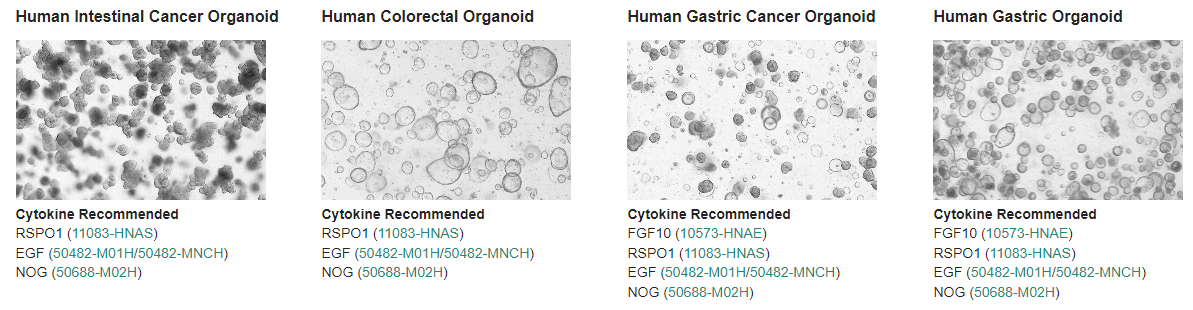 D1Med has used Sino Biological's top-quality cytokine products such asFGFs, NogginR-Spondin 1, and EGF to develop a range of standardized organoids such as stomach, intestine, kidney, lung, and liver, as well as tumor organoids that replicate breast, lung, liver, and ovarian cancers. These organoids have been successfully deployed in drug development and precision therapy development applications.