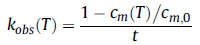 and is founded on the typical outcome that multiple mechanisms reduce to zero-order kinetics in the limit of small extents of reaction.33,35 In the relations described above, t is the preselected incubation time, T is the incubation temperature, cm is the monomer concentration at T for that incubation time and cm,0 is the initial concentration before heating. In previously conducted work, the ratio of cm to cm,0 was characterized as the monomer fraction (m).12,33