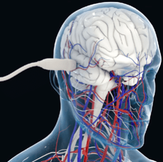 Transcranial fUS imaging of the brain microvasculature in adults (artist’s impression). Image Credit: Courtesy A. Dizeux/M. Tanter.