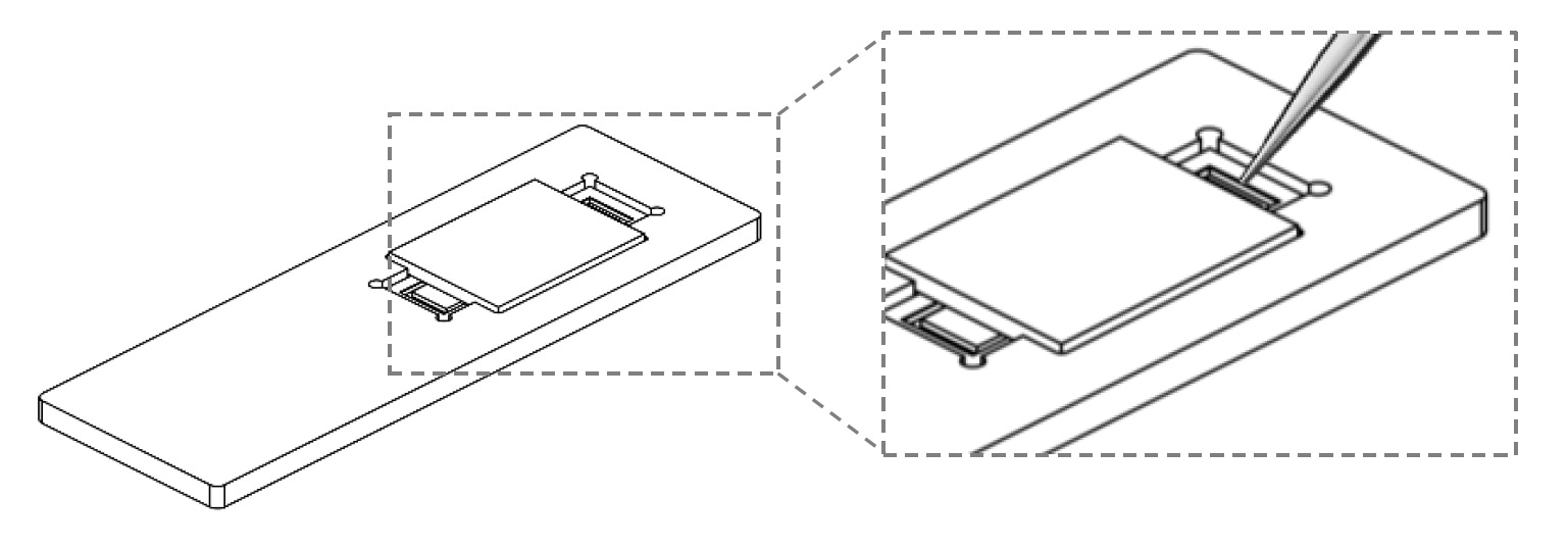 1. Place a clean LUNA™ Reusable Slide Coverslip carefully on top of the LUNA™ Reusable Slide chamber.