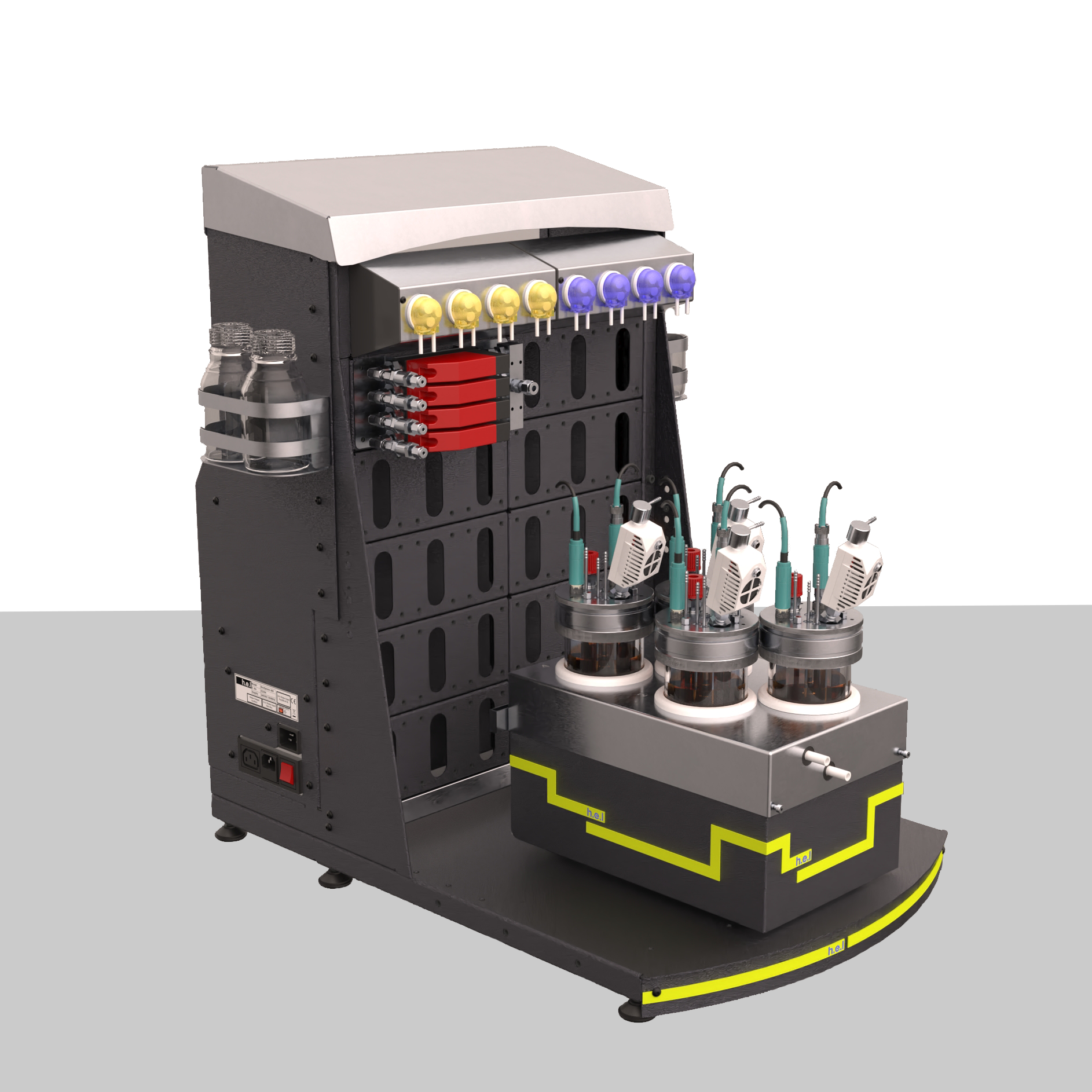 The highly configurable nature of their lid extends the testing capability for the bioprocess, thereby selecting which probes to utilize to specify in real time the vital parameters for the fermentation. Integrated with H.E.L’s WinISO enables the complete automatization of aerobic fermentation.