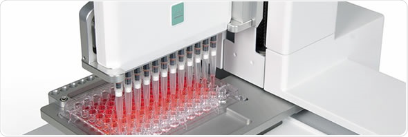 The major source of problems in pipetting performance are human pipetting errors. The tip immersion depth and pipetting angle might differ slightly from column to column even within the same plate. Both factors influence pipetting performance and can lead to ambiguous test results. Automating the pipetting procedure leads to reproducible results and eliminates errors.
