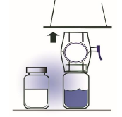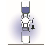 5. Turn the package over. Press straight down to fully insert the clear plastic spike through the diluent vial stopper (Figure B).