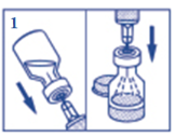 Insert the needle through the rubber stopper (within the marked circle) of the vial