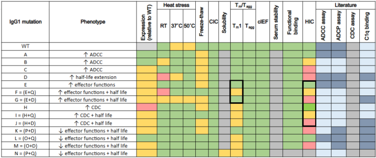 Table 1. shows all the biophysical and functional assays performed on the Trastuzumab mutations. Source: ELRIG (UK) Ltd.