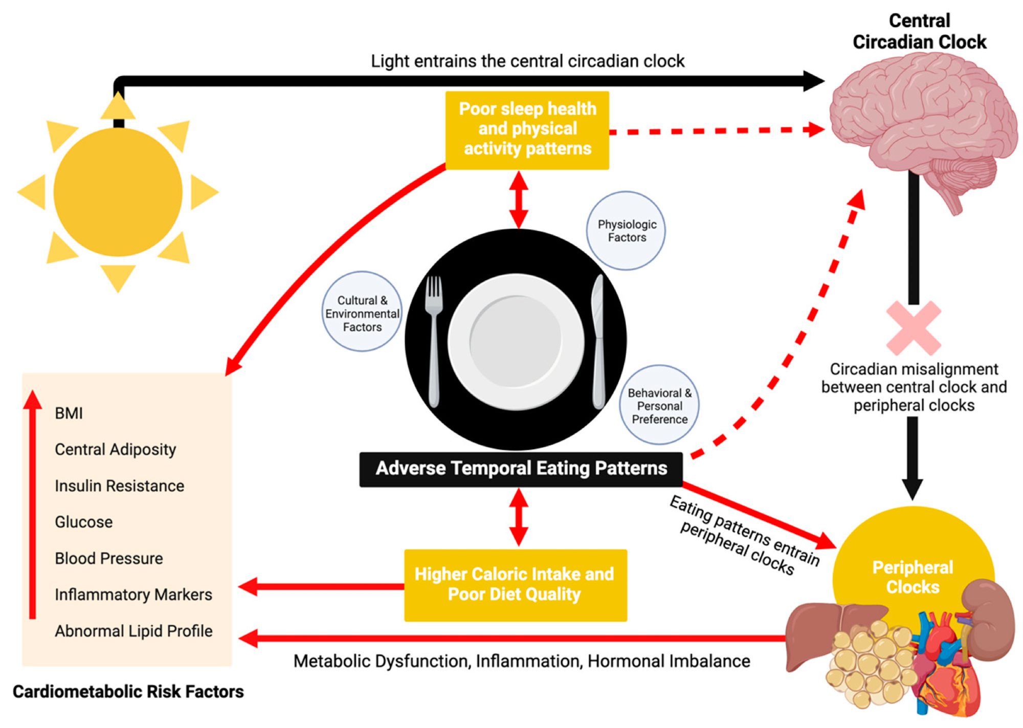 Mechanisms linking temporal eating patterns to cardiometabolic disease. Created with BioRender.com1