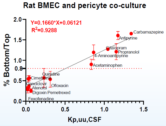 IVIVE study demonstrated that BMECs/Pericytes cultivated on transwell plates were consistent with in vivo results. The reproducible, high throughput approach provides: