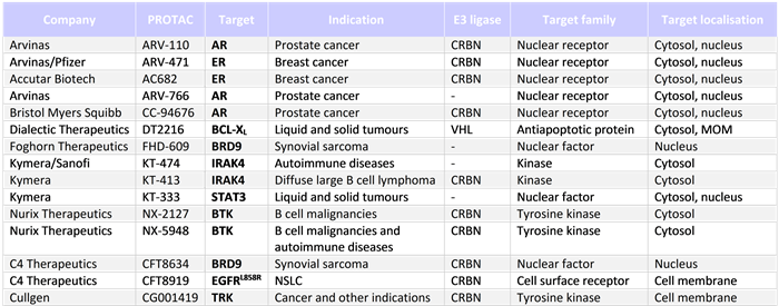 Table 1. PROTACs entered clinical trials by the end of 2021. Source: Ruffilli et al., 2022.