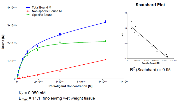 Figure 4. Typical saturation curve and Scatchard plot for [3H]cimbi-36 binding to 5-HT2A receptors.