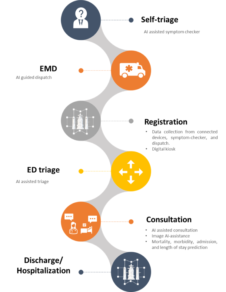In emergency medicine, AI has gained traction not only in clinical decision support (CDS) but also in digital twin modeling of patients, predictive analytics for emergency department (ED) flow, and integration with prehospital emergency medical services (EMS).3,8,9