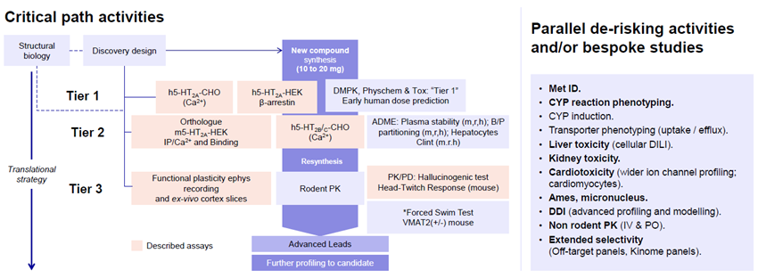 - A comprehensive panel of preclinical assays was set up for a lead optimization project aimed at characterizing novel 5-HT2AR agonists devoid of hallucinogenic effects for the treatment of mood disorders. These assays were used to develop a tailored, streamlined, and informative screening cascade (SC) to facilitate the delivery of high-quality and reliable data.