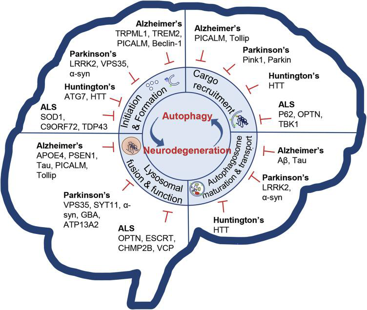 The autophagy and neurodegeneration process.