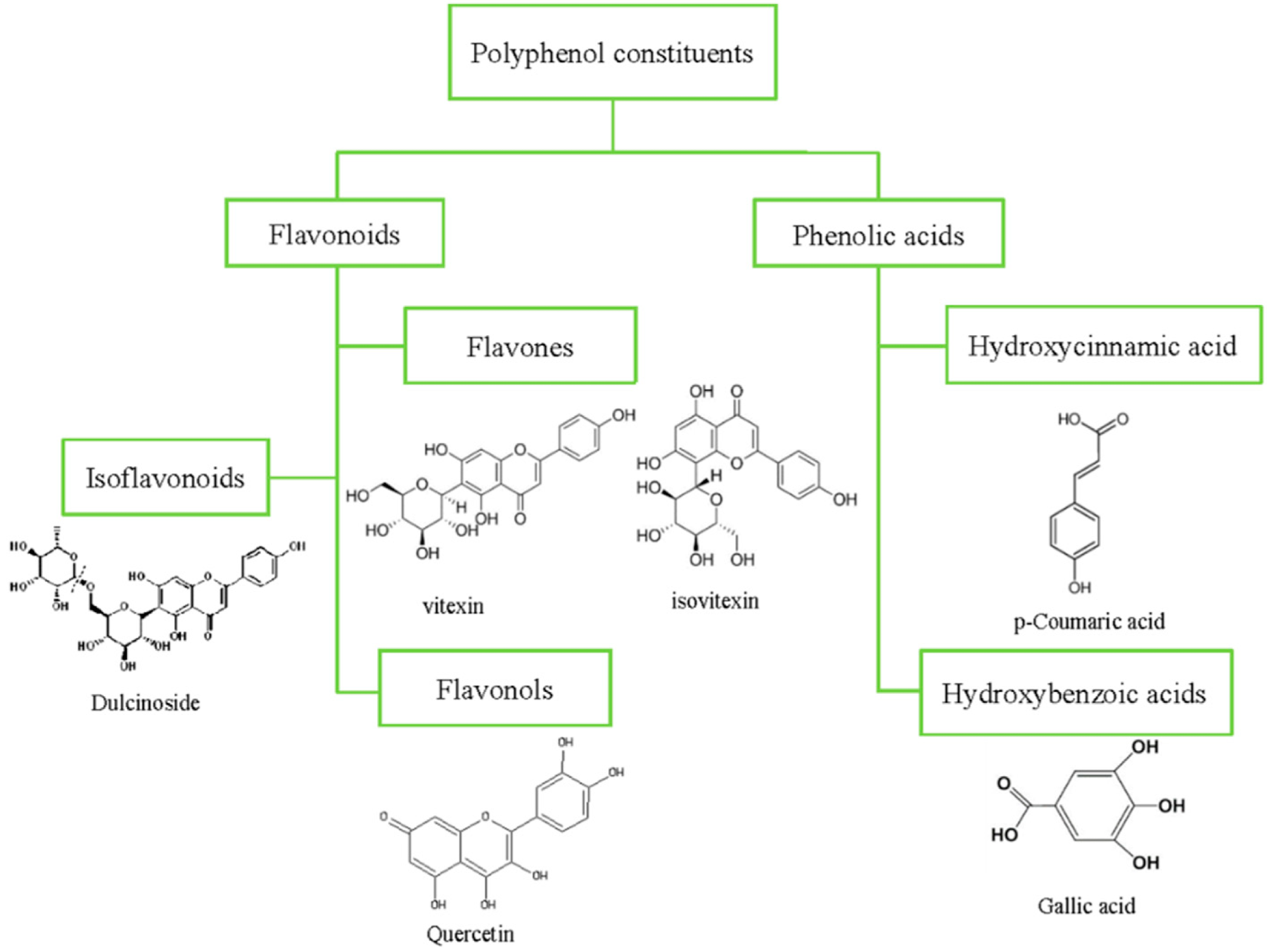 Chemical structures of the main polyphenol constituents in the mung bean.Chemical structures of the main polyphenol constituents in the mung bean.