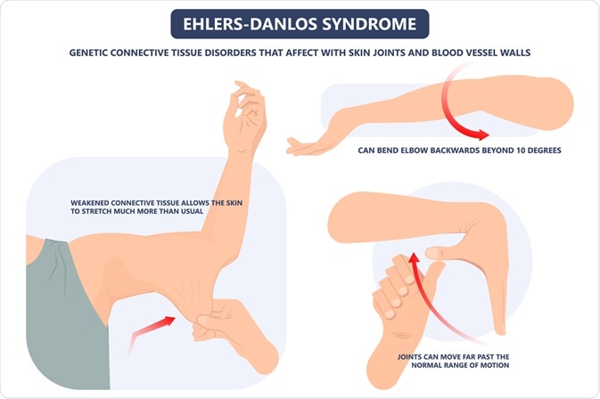 Hyperelasticity is often found in people with Ehlers-Danlos Syndrome (EDS). EDS is a collective group of genetic disorders that alter the connective tissues that play a vital role in structuring and supporting the organs, bones, skin, and blood vessels in the human body.