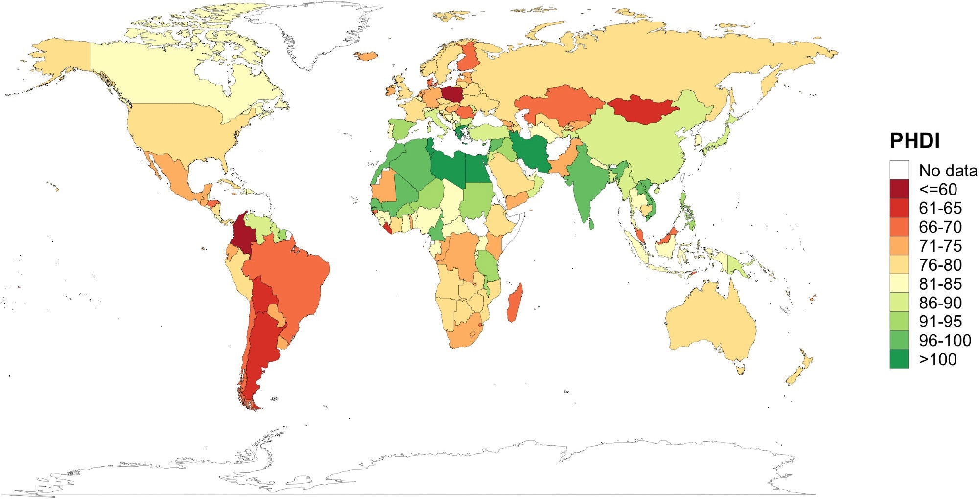 Geographic distribution of the PHDI for people aged over 20 in 171 countries/territories in 2018. The PHDI ranges from 0 to 140, where 0 indicates nonadherence to the Planetary Health Diet and 140 indicates perfect adherence. PHDI, Planetary Health Diet Index.5