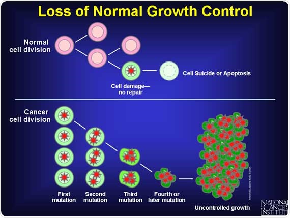 The body is made up of trillions of cells that usually grow, divide and die in an organized manner. This process is a tightly controlled by the DNA machinery within the cell. When a person is developing and growing up, cells divide rapidly to allow for growth but once adulthood is reached, cells mainly only divide to replace worn-out or dying cells or to repair injuries.