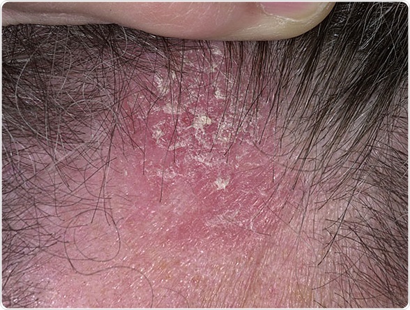 • Scaling and itching of the skin across the scalp, face and around the ears.