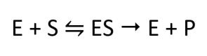 E is the enzyme, S is the substrate, and P is the product formed.