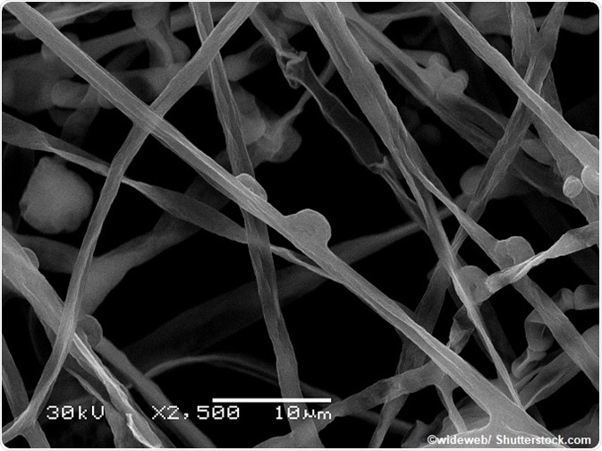Image: Scanning electron microscope image of fungi mycelium and spores.