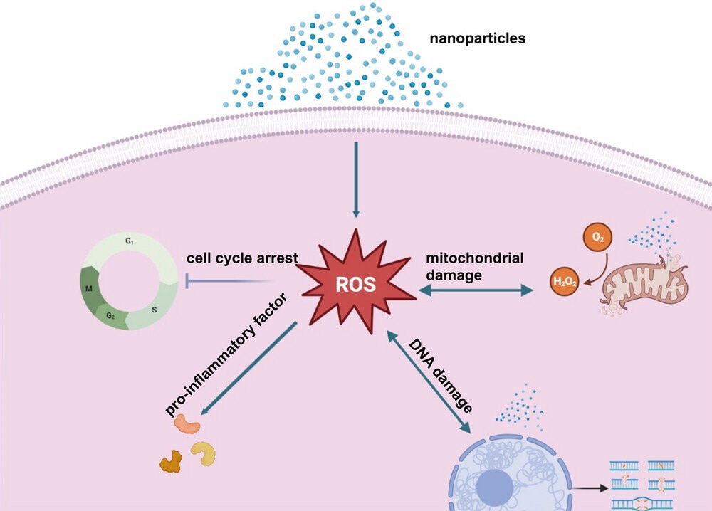 Nanoparticles generate a high number of reactive oxygen species (ROS) due to their large surface area, which leads to oxidative stress, inflammation, and genotoxicity. Oxidative damage to deoxyribonucleic acid (DNA) and histones has been observed in human and animal studies, with higher DNA-damage markers present in polluted settings.5