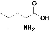 Both of these amino acids are non-polar and aliphatic and have a four-carbon side chain emerging from the basic amino acid structure. The skeletal structure of leucine is shown below.