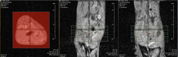 So, we can show that there is a real advantage of working at 1 Tesla in comparison to for instance 7 or 9 Tesla when one is using a relaxation enhancer to target a specific epitope in the region of interest.