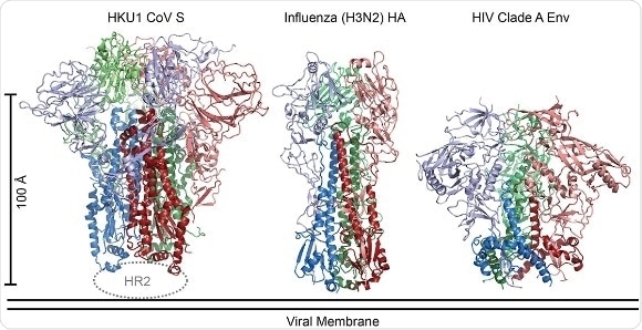 The coronavirus spike (CoV S) is the largest class I fusion protein known and displays structural similarities to the spike proteins of influenza virus and HIV. (Image courtesy of Robert Kirchdoerfer.)