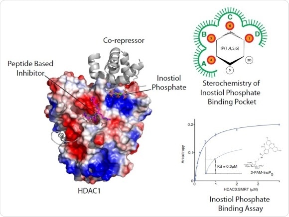 They were then able to work out the specific features of inositol phosphates and how they bind to activate the HDAC enzyme. They then solved the crystal structure of a novel peptide inhibitor, which is based upon the enzymes’ substrate, in complex with HDAC1: co-repressor. This not only gave insights into how substrate interacts with the enzyme but could also help to improve drug treatments for a variety of health issues. Taken together these results have shed light on the mechanism of activation by inositol phosphates.