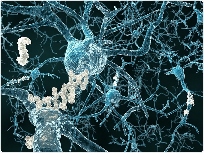 Alzheimer's disease - neurons with amyloid plaques. Credit: Juan Gaertner / Shutterstock.com