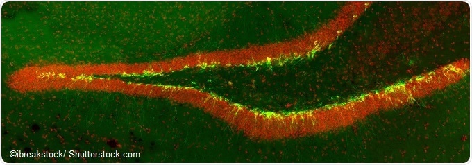 New born neurons in the transgenic mouse hippocampus (dentate gyrus) labeled with green fluorescent marker. Implicated in mood and memory.