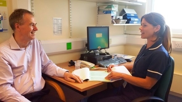 Research participant Justin Evans with Research Sister Anna Emery, Research Sister at the NIHR Clinical Research Facility Sheffield