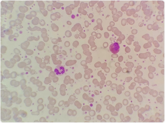 Blood smear sample showing eosinophils and neutrophils. Credit: Chamaiporn Naprom/Shutterstock.com
