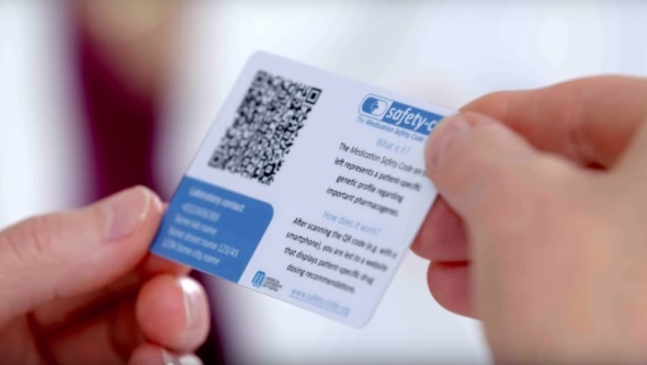 Genetic data, stored as QR code on a bank card. Quelle: U-PGx project / Federal Institute for Drugs and Medical Devices, Germany