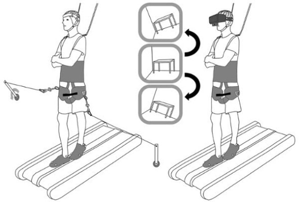 Steven Peterson and Daniel Ferris used electroencephalography (EEG) and electromyography (EMG) to record electrical activity from the brain and muscles as participants walked or stood in place on a narrow beam mounted to a treadmill. The participants’ balance was challenged by either pulling them from side to side or distorting their visual field with a virtual reality headset. The researchers found that these balance disruptions elicited similar electrical responses in different parts of the brain, suggesting a common signature of balance maintenance in the healthy brain. Training programs to improve balance in older adults or individuals with lower limb amputations should therefore keep in mind these underlying brain differences.