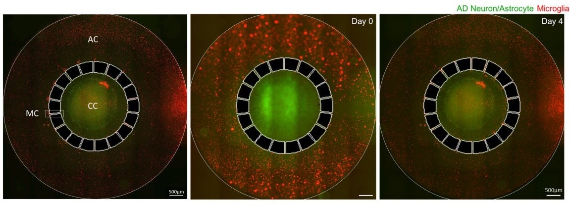 We took our original Alzheimer’s-in-a-dish culture system and added another chamber for microglial cells.