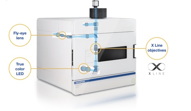 • Optimized for X Line objectives: Specially designed light path provides more homogeneous illumination. X Line objectives also improve numerical aperture, chromatic aberration correction and flatness.
