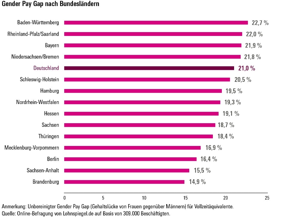Gender Pay Gap by states (Graphic: Lohnspiegel.de)