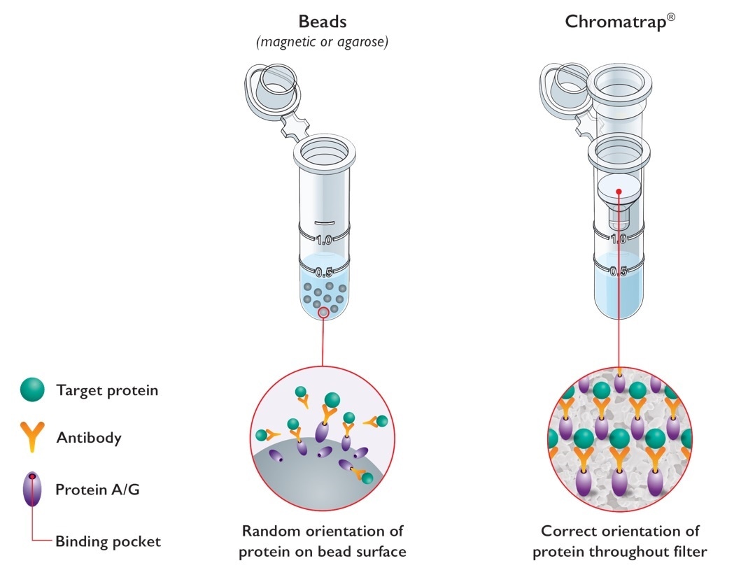 Epigenetic analysis is complex, and ChIP often considered a difficult technique due to bottlenecks in speed and throughput. Unlike standard bead-based ChIP assays, Chromatrap® uses a unique filter-based system for the capture and selective enrichment of DNA-associated binding proteins.